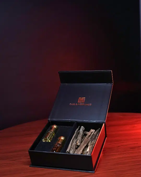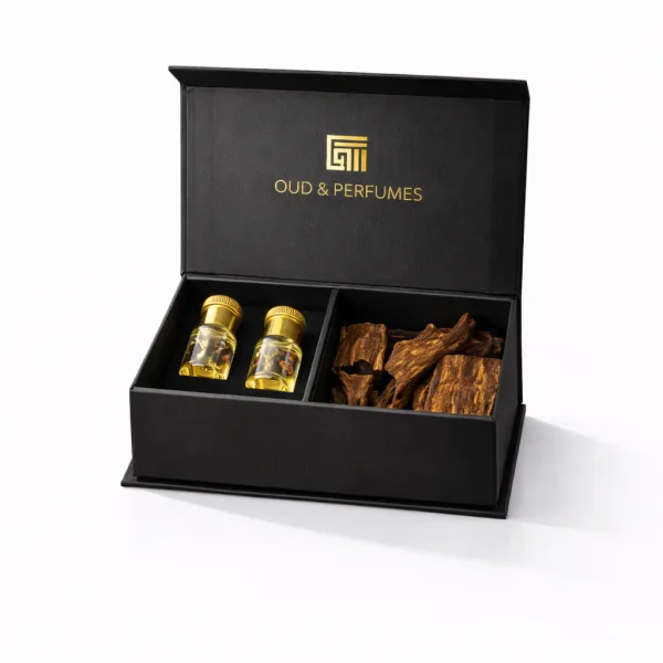 - تقديم فاخر: يأتي المنتج في صندوق أسود أنيق ومبطن يحمل شعار “Oud & Perfumes” باللون الذهبي، مما يجعله هدية قيمة تعبر عن الفخامة والتقدير.